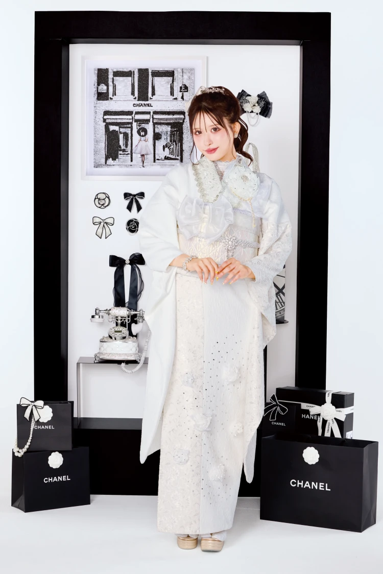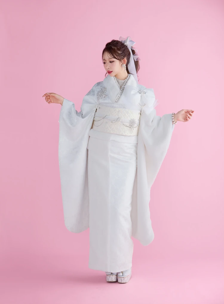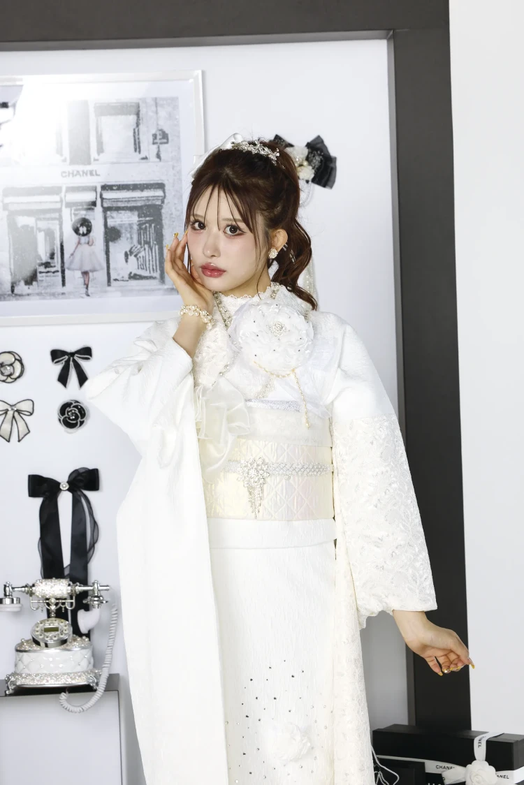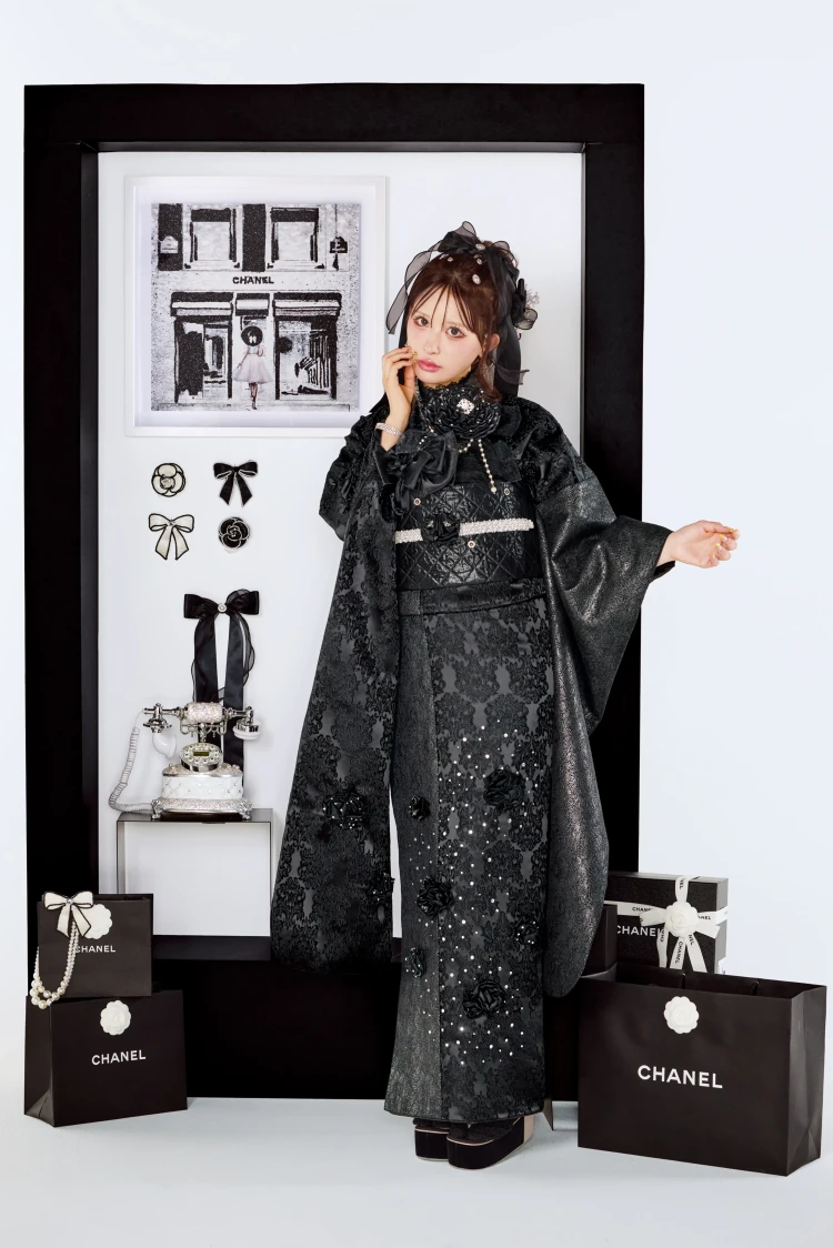 オートクチュールドレスのように気高くエレガント。ヨーロッパハイブランドから取り入れたテイストやデザインを、高級ドレス仕立の素材で。すべてにワンランク上の贅を尽くし、新しい価値観から生まれた世界でここにしかない振袖が誕生