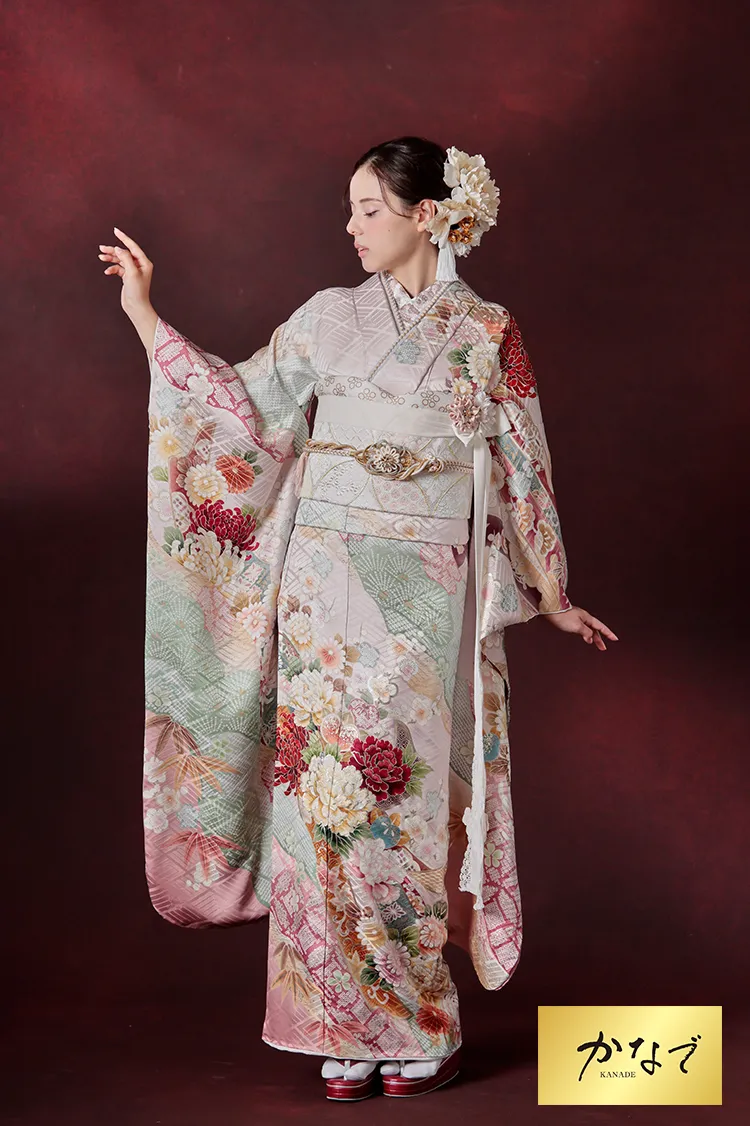 正統派古典はんなり王道の古典柄。二十歳は特別だから“大和撫子”を身に纏いたい。きれいめ定番和柄の美しさで上品さ溢れる清楚な女性に。